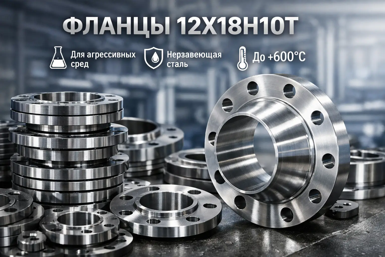 Фланцы из стали 12Х18Н10Т применяются в трубопроводных системах, работающих в агрессивных средах, при повышенных температурах и в условиях коррозионного воздействия. Данная марка нержавеющей стали широко используется в химической, нефтегазовой и пищевой промышленности благодаря высокой устойчивости к коррозии и температурным нагрузкам.